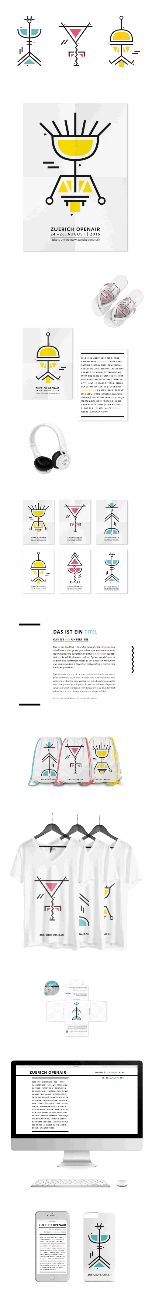Branding für den jährlichen Event «Zürich Openair». Plakat F4 | Flyer A5 | Farben: Schwarz und Pantone Solid Uncoated: Türkis 3252, Gelb 3252, Lachs 3252 | Animationen für digitale Bildschirme draußen, Website und App. PDF’s: Dokumentation, Gestaltungskonzept und Präsentation